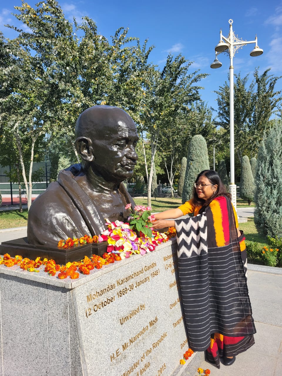 Embassy celebrated Gandhi Jayanti at Bagtyyarlyk Sports Complex in Ashgabat (02 October 2024).